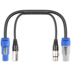 Alimentation et signal combinés en un seul câble. Avec des connecteurs Powerconnector et XLR aux deux extrémités, ces câbles facilitent le câblage des effets LED professionnels, des têtes mobiles et des lèche-mur.Câble combiné avec alimentation et signal (DMX) dans un câble, Parfait pour une mise en chaîne facile des effets lumineux, Connecteur d'alimentation A/connecteur d'alimentation B et fiches XLR (XLR femelle/connecteur d'alimentation A - XLR mâle/connecteur d'alimentation B), 3x 1.50mm² câble d'alimentation (16A max), Longueur = 0,50 m, Données techniques: Couleur du produit: Noir, Sélectionnez les deux prises: Powerconnector (A), Powerconnector (B), XLR 3 broches (M), XLR 3 broches (F), Longueur du câble: 0,5 m, Câble d'alimentation: 3x 1.5mm², Conducteur: 8x0,2mm, Diamètre extérieur: 10,8 mm, Blindage: 64x0,08mm, Impédance: 120 Ohm, Poids (kg): 0.3000