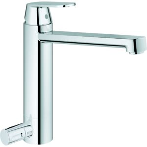 Grohe Eurosmart Cosmopolitan mélangeur de cuisine 31179000 Mitigeur d'évier à levier simple, DN 15 bec plat Basse pression pour Chauffe-eau ouvert Installation à un trou Grohe SilkMove® cartouche en céramique 46 mm surface Grohe StarLight® limitation de quantité réglable de manière variable sortie de tuyau pivotante Plage de pivotement 140 ° Strahlregler avec Strahlregler tuyaux de raccordement flexibles Système d'assemblage rapide