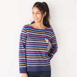 Blancheporte T-shirt Marinière Rayé Manches Longues, Brodé "cœur" Doré - Femme Bleu 38/40