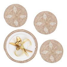 Subtilement métallisée, la fantaisie s’inscrit au menu avec ces sets qui apportent la touche finale, illuminent les repas et protègent la table. Dimensions• Diamètre 36 cm environComposition• 100% polypropylène avec fils métallisésDescription• Belle qualité• Design métallisé• Lot de 4 sets de table de même coloris• 4 coloris au choix