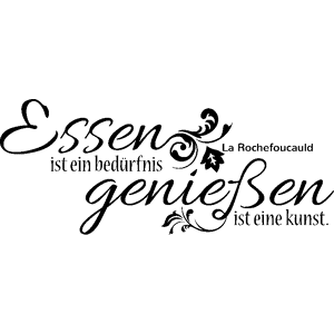 Des stickers muraux citations pour la déco ! Avec les stickers citation et ce sticker Essen ist ein bedürfnis genieben, vous pourrez enfin décorer l'intérieur de votre cuisine à votre guise avec leur aide ! Emerveillez vos convives avec ce sticker Essen ist ein bedürfnis genieben comme décoration d