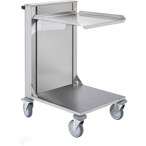Chariot en inox à 1 plateau. Dossier de poussée amovible. Idéal pour les milieux agro-alimentaires, chimiques et hospitaliers. Caractéristiques techniques du chariot : Charge : 100 kg. Dimensions extérieures Lxlxh : 825 x 520 x 970 mm. 4 roues pivotantes dont 2 avec freins, de Ø 100. Roues à ban...