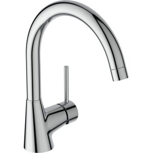 Ideal Standard Nora cuisine Nora Numéro d'article : B9328AA bec haut pivotant HD, mitigeur de cuisine chromé, DN 15 avec bec de tube pivotant à 360 degrés Aérateur Surface chromée AA Projection 187 mm Projection totale 226 mm Hauteur totale 286 mm Hauteur du bec 192 mm Diamètre de trou requis 35 mm Tuyaux flexibles de raccordement G 3/8 Levier de commande en métal Fixation par le bas (EASY FIX) avec joint de centrage Cartouche d'un diamètre de 35 mm et rondelles d'étanchéité en céramique Inox de cartouche de Inox contrôle intégré de la température de l'eau chaude Test de durée de vie EN 817 comportement au bruit DIN 4109 2000