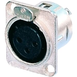 Fiche 3 points, cuvettes à souder, corps nickelé, contacts plaqués argentEmbase métallique format D pour montage dans panneau Composant à la norme UL. Points Forts et Avantages: Embase métallique robuste, au gabarit D, Découpe panneau standard (format D) 24 mm, Existe en version 3 à 7 points, avec coupelles à souder, Caractéristiques: : Type de produit: Connecteurs, Type: Connecteurs XLR, Nombre de points: 3, Sexe: femelle, Contacts: argenté, Mode de connexion: Contacts par soudure, Boîtier: Fonte de zinc, Largeur: 26 mm, Hauteur: 31 mm, Profondeur: 24 mm, Poids: 0,022 kg, Informations complémentaires: dans boîtier Type