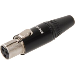 REAN Mini XLR XLR mâle 3 broches femelle noir avec contacts dorés: Facile à monter, Boîtier métallique d'une grande robustesse, avec protection de câble optimale, Système blindé - haute protection contre le bruit de fond et protection de CEM, Mécanisme de verrouillage intuitif et robuste dans un système de verrouillage sûr., Détente de la traction de la pince de serrage qui a fait ses preuves des millions de fois - jusqu'à 4 mm de diamètre de câble., Insert de codage et décharge de traction pour éviter les positions erronées / la rotation de l'insert ou du câble., Données techniques: Type de produit: Connecteurs, Type: XLR, Nombre de points: 3, Sexe: femelle, Diamètre câble: 2 - 4 mm, Contacts: Plaqué or, Mode de connexion: Contacts par soudure, Boîtier: Fonte de zinc, Couleur: noir, Décharge de traction: PVC, Poids: 0,005 kg