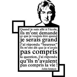 Des stickers muraux citations pour la déco ! Avec les stickers citation et ce sticker Quand je serai grand - John lennon, vous pourrez enfin décorer l'intérieur de votre cuisine à votre guise avec leur aide ! Avec une citation du fameux John lennon comme décoration murale, vous allez inculquer de l